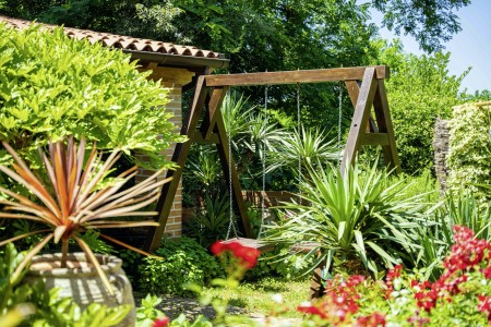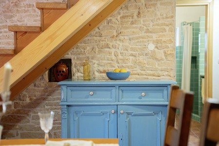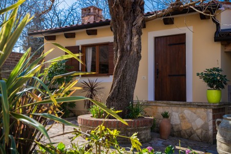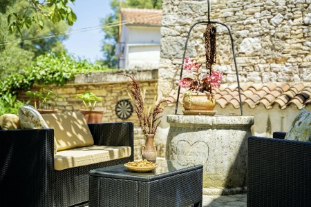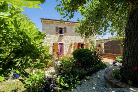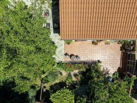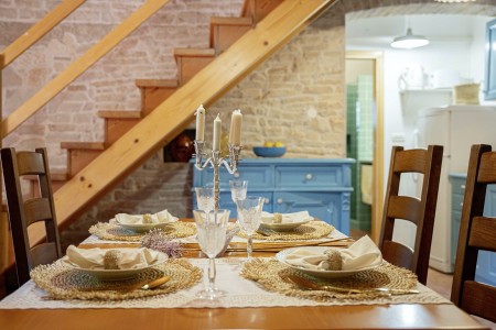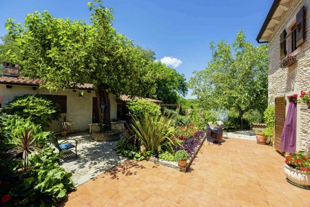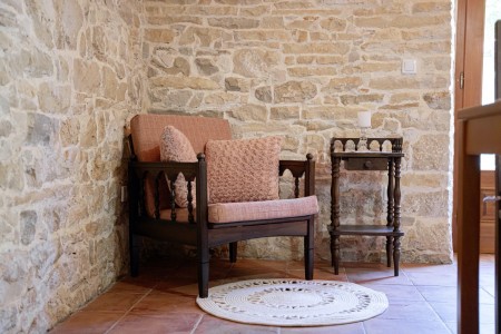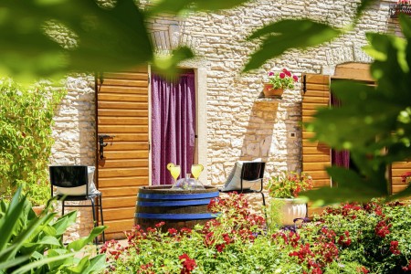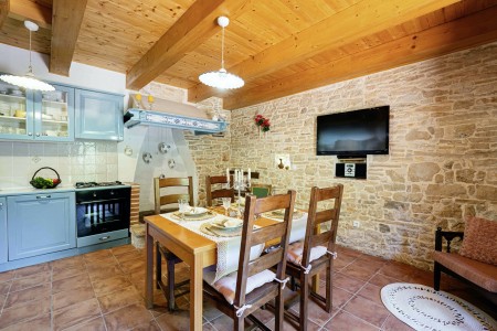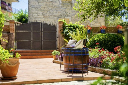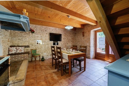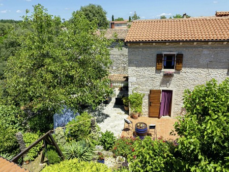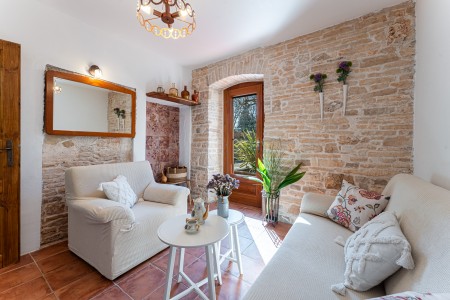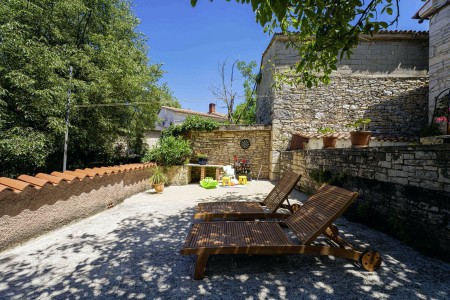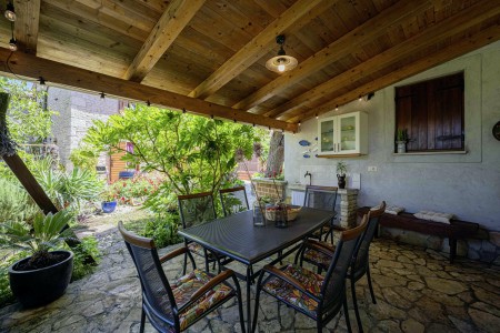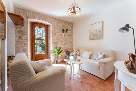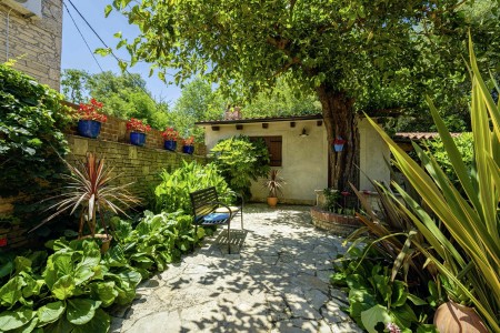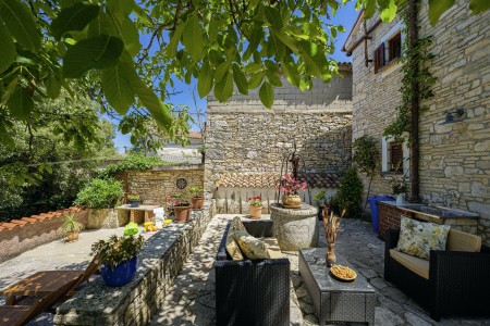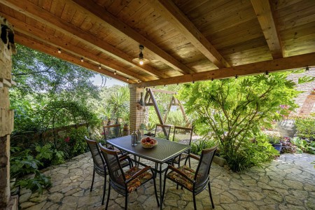 House Luca is situated in the small village of Glavani, nestled between Barban and Vodnjan, approximately 9 km from the sea. Set on a fenced plot bordered by a stone wall, the property offers a peaceful atmosphere and complete privacy. This traditional Istrian stone house is thoughtfully appointed to accommodate a family or several couples. Inside, guests are welcomed by a functional yet cosy interior, while the outdoor space boasts a well-kept garden with Mediterranean vegetation and several inviting seating areas. The spacious inner courtyard provides a charming backdrop for al fresco dining, reading, or simply relaxing in the open air. After a day at the beach or a visit to the nearby Glavani Adrenaline Park, it is the perfect place to unwind and enjoy a barbecue dinner. Well-marked cycling routes nearby invite you to discover the varied Istrian landscape at your own pace. Thanks to its convenient inland location, the house also makes an excellent base for excursions to the renowned coastal towns of Rovinj, Poreč, and Pula – all easily reachable by car.