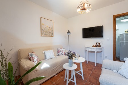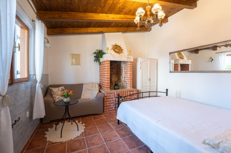 House for 6 persons: approx. 130 m², consisting of two parts that are rented exclusively as one unit. The larger house has approx. 100 m² of living space and it consist of two floors. On the ground floor there is an air-conditioned kitchen with a dining room and an impressive open fireplace, a living room with access to the yard, and a bathroom with a shower. On the first floor there are two double bedrooms and one bathroom with a shower. The first floor is also equipped with air conditioning. The smaller house of approx. 30 m² consists of a small living area with a sofa and an armchair, as well as an exit to the garden, an air-conditioned bedroom with a double bed, and a bathroom with a shower. Extending from the house, a covered terrace provides an inviting space for relaxation.