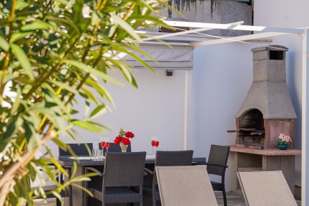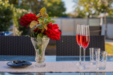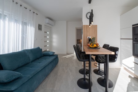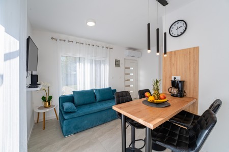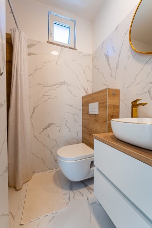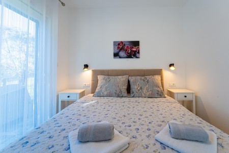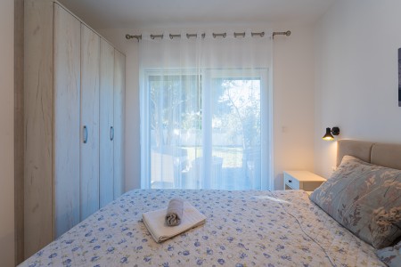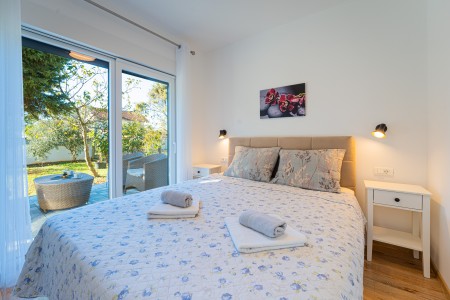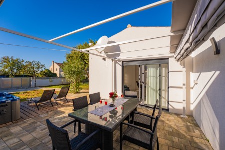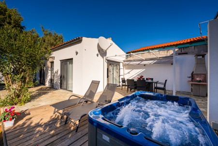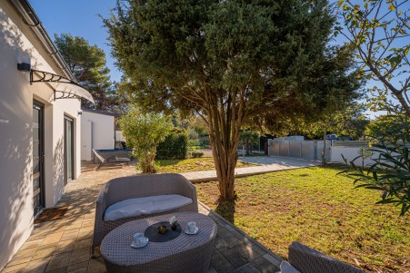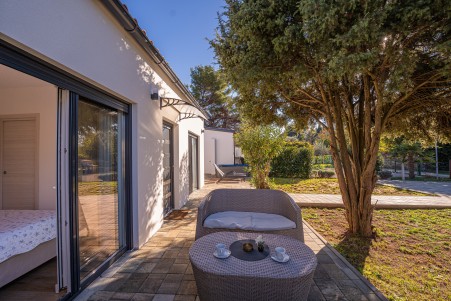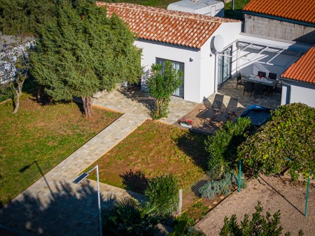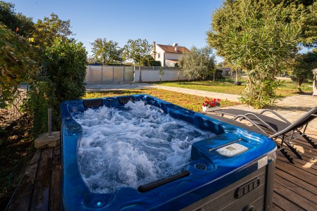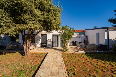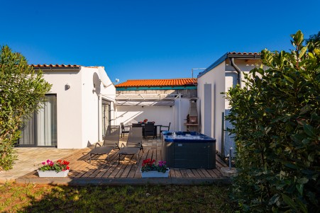 The detached holiday house is located in Peroj, a picturesque village on the west coast of Istria, about 10 minutes by car from Pula. Located only 200 metres from the beach and set in peaceful, green surroundings, house Luisa offers all the amenities for a relaxing beach vacation. Here you will enjoy not only the favourable location close to the beach, but also the benefits of a private Jacuzzi. The backyard is completely fenced and comes with barbecue facilities, a seating area and sun loungers. Heading inside, you will find a modern and lovingly furnished interior. In the small center of Peroj (1 km) you can find a restaurant and shopping facilities, while the next larger village Fažana (3 km) offers a wider range of gastronomic facilities as well as a lovely old town center. We highly recommend a boat excursion from Fažana to the Brijuni Islands, which are certainly worth a visit. From Peroj to Fažana you can go by car or you can take a walk along the scenic seaside promenade, lined with beautiful beaches and fragrant pine trees.