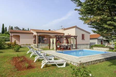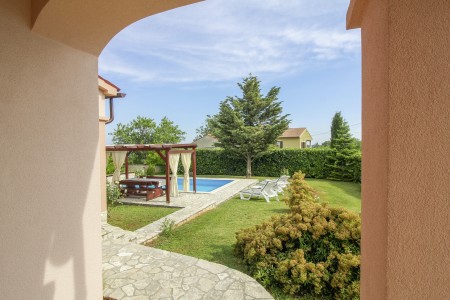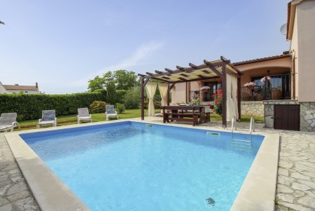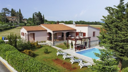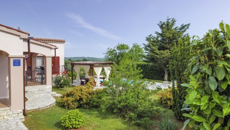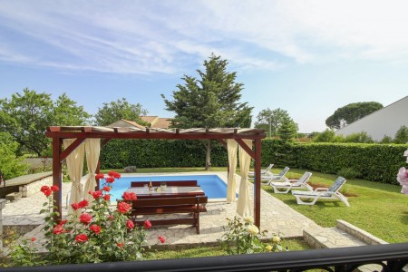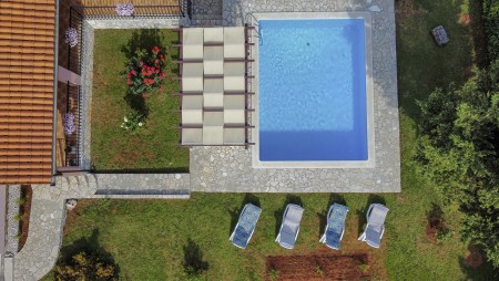 Featuring a lovely setting in a peaceful and quiet surrounding, house Luna is the right place for a relaxing rural vacation with the entire family. The comfortable detached house is located in the southern part of the Istrian peninsula, in the small village of Marčana, only 14 km away from Pula. The center of Marčana offers a restaurant and a grocery store, which can be reached on foot within only a few minutes. Don’t miss out on visiting the historic town of Pula offering a full range of shops as well as numerous unique sights. Not only Pula, but also the lovely villages, and nearby beaches are well worth exploring. And if you simply desire to relax and unwind, grab a sun lounger and make yourself comfortable at your favourite spot in the well-kept garden offering a covered terrace, a private swimming pool (6 x 4 m), and an outdoor shower as well as barbecue facilities.