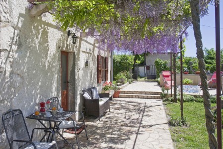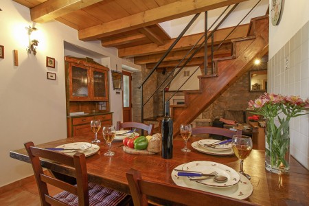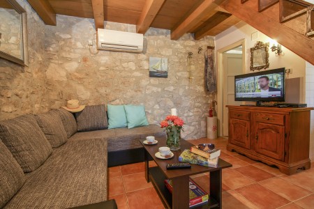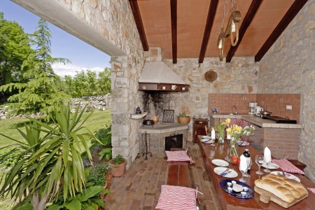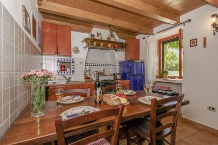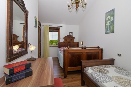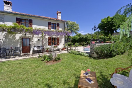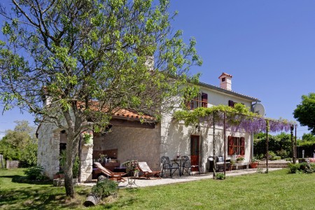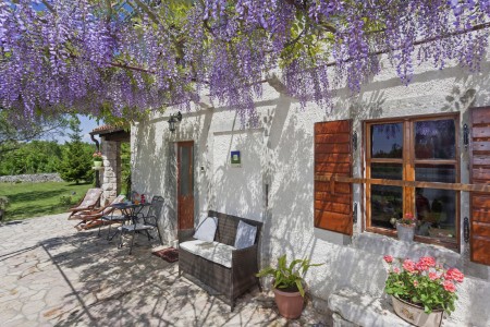 The charming detached stone house is located on a large, well-kept property with altogether 5,000 m² of land, which is part of the nature park Tihovinje-Goli. While the first neighboring house is located at a distance of approx. 200 meters, this place offers complete privacy and tranquility. The secluded and unique location, surrounded by rolling green hills, vineyards, and meadows, guarantees a relaxing vacation for the entire family. Heading inside, you will find lovely decorated and welcoming rooms provided with all amenities needed for a pleasant stay. The small village of Gora Glušići is located in the eastern part of the Istrian peninsula, at a distance of approx. 10 km to the coast.