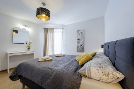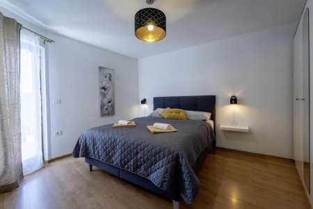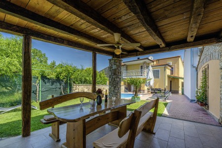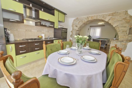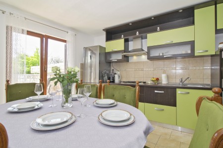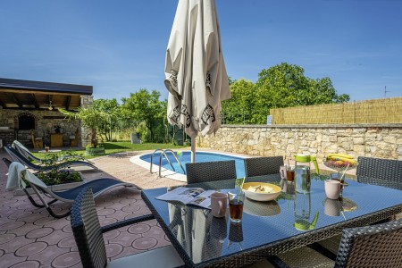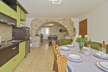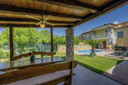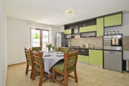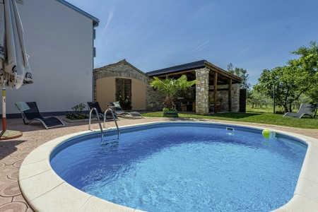 The charming holiday home with the lovely name Nikolina is located in Vodnjan, a historic little town near the west coast of the Istrian peninsula. Vodnjan is home to the Church of Saint Blasius, famous not only for the highest tower in Istria, but also for its impressive collection of sacred art and the "Mummies of Vodnjan". In addition to a picturesque old town with many sights and secrets to discover, you will find everything for your daily needs, as restaurant and shopping facilities are within walking distance. Only a few minutes by car from Vodnjan you will find the fishing village of Fažana, from where excursion boats leave for the National Park of the Brijuni Islands. The nearest beach is located in Peroj and is only 6 km away from the house. In addition to numerous possibilities for exciting excursions, a comfortably furnished holiday home with three bedrooms, fully fenced garden and private pool (3,2 x 5,3 m) as well as covered barbecue area with fireplace and lounge/dining area awaits you.