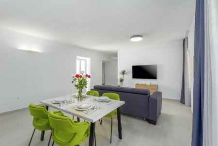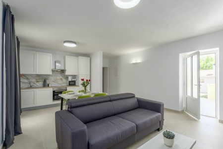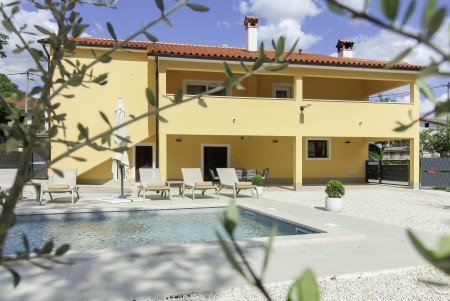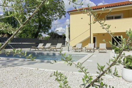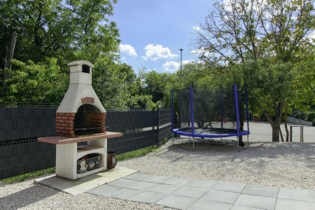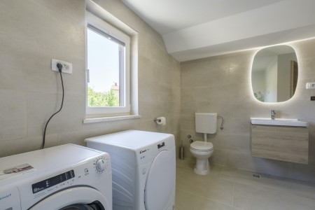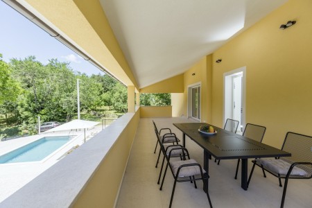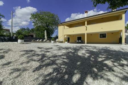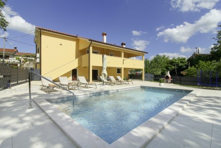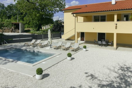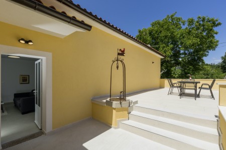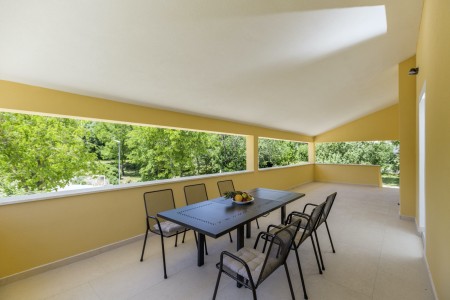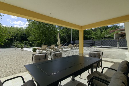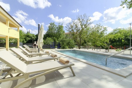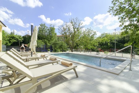The detached house is located just outside Sveta Katarina, a small village that is part of the Pičan municipality. The area is renowned for its uniquely beautiful landscape of expansive fields, meadows, and forests, offering a perfect setting for both relaxation and activity. The outdoor area includes a private swimming pool (4 x 7 m) with a sun terrace and loungers, a barbecue fireplace, and a covered terrace. The surroundings are ideal for extensive bike rides and hikes through the evergreen landscape, and those who climb Mount Učka will be rewarded with breathtaking views. The house is also well-suited for a beach holiday, with the "Copacabana" beach beneath the historic town of Plomin just 24 km away and easily accessible by car. The best pizzeria in the area can be found in the picturesque old town of Labin (about 20 km).