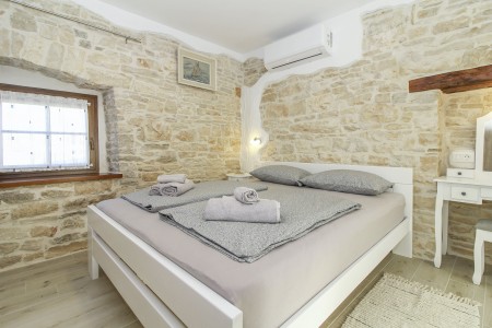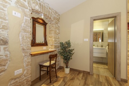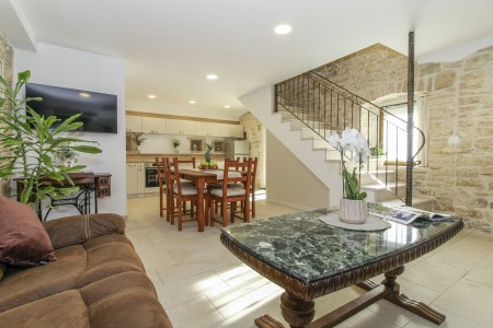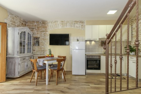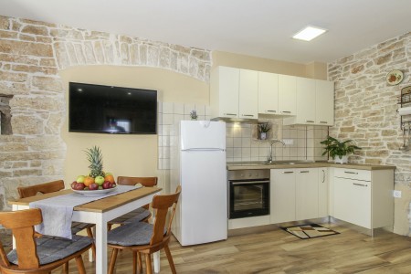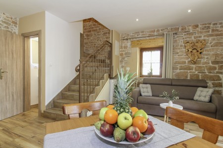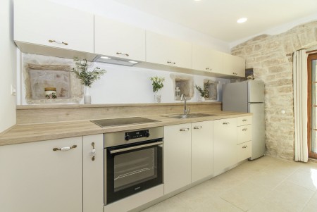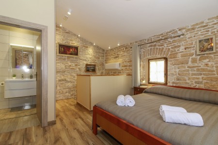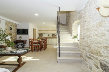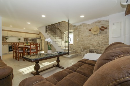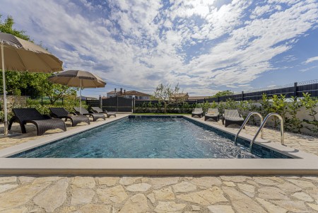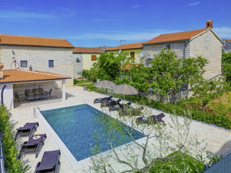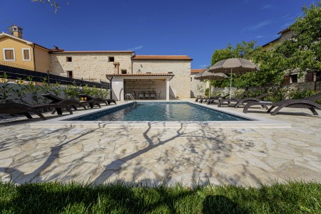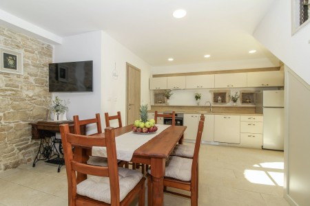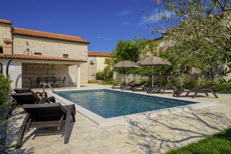 This completely refurbished vacation home is located in Barat, a quiet village above the picturesque Lim Valley, close to the Limfjord, famous for its oyster farming. While you can enjoy your peace and privacy here, the lively coastal towns such as Poreč, Rovinj and Vrsar with their numerous beaches, entertainment and shopping facilities are easily accessible by car. The entire property including swimming pool (4 x 8 m) with sun terrace and barbecue area is completely for your exclusive use. On request you can buy fresh eggs and seasonal vegetables from your landlords.