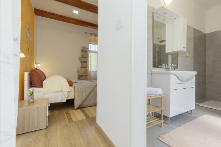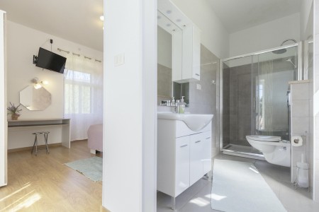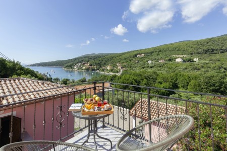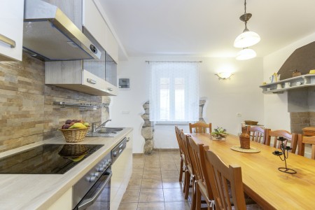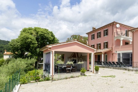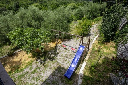 Nestled on a scenic slope with breathtaking views of the sea in Sveta Marina Bay, the comfortably furnished Villa Oliva Vilea awaits you. This detached holiday home features a private pool and is located just 80 meters from the beach in Sveta Marina, an idyllic village on the eastern coast of Istria, perfect for a tranquil yet active holiday. The area is renowned for its beautiful swimming coves, exceptional snorkeling and diving opportunities, and a stunning landscape ideal for extensive nature tours. Conveniently, restaurants and shopping facilities are within walking distance, while the town of Labin, 12 km away, offers daily necessities, a picturesque old town, and the region’s best pizzeria. The villa and its entire outdoor area, including the pool, are exclusively yours to enjoy. Young guests will delight in their own playground equipped with a swing, slide, and climbing frame.