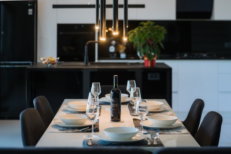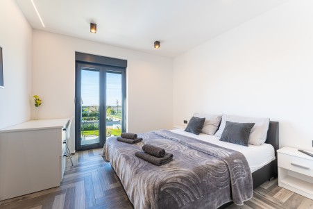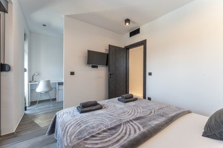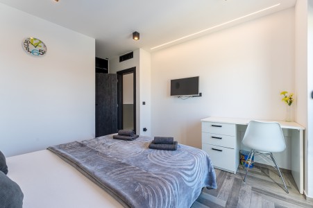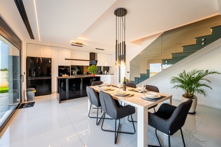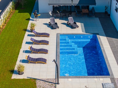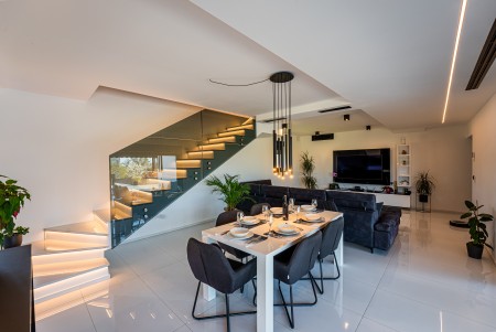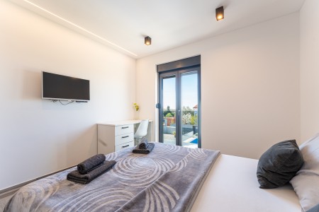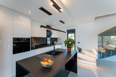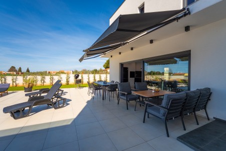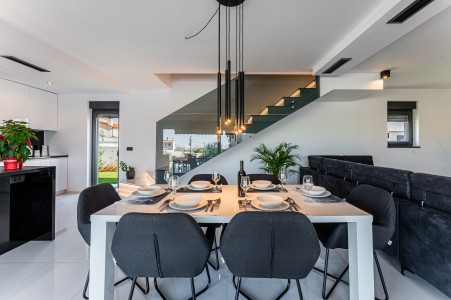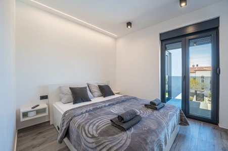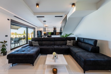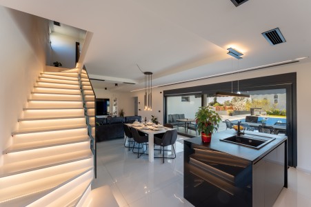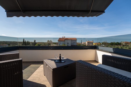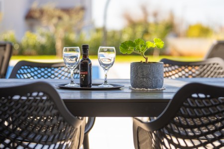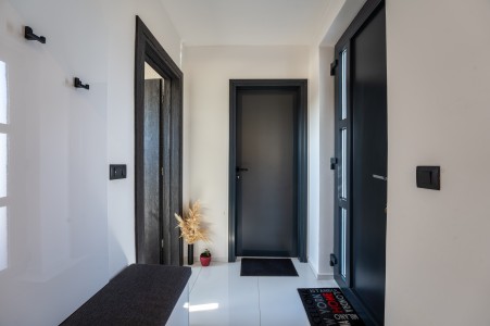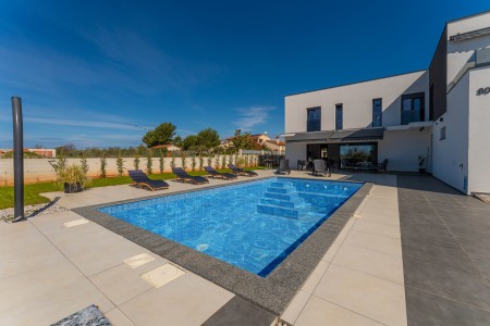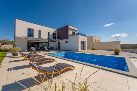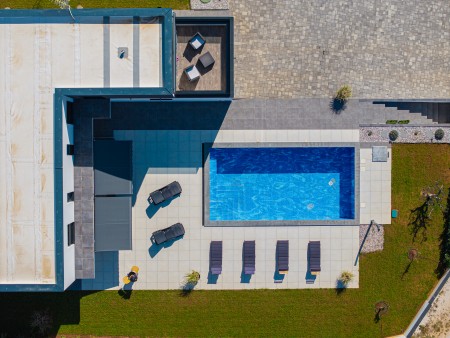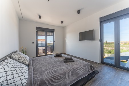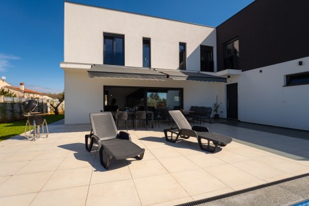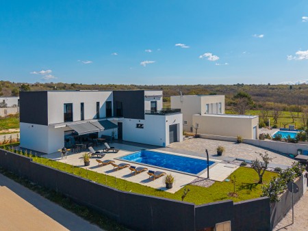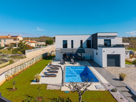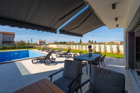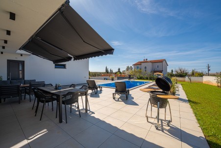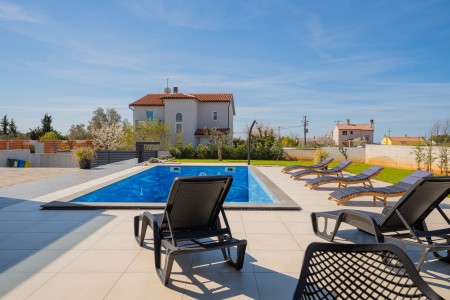 This detached villa is situated in Majmajola, approximately 5 km from Vodnjan, offering an ideal retreat for up to six guests. Surrounded by green countryside, the location invites you to enjoy scenic walks and bike rides. Approximately 11 km away, the beach in Peroj offers several bays and beaches that are perfect for a relaxing day by the sea. The interior is tastefully furnished in a modern style, providing a high level of comfort with three bedrooms and three bathrooms. The fully enclosed garden features a swimming pool (8 x 4 m) with sun loungers, offering a refreshing escape on warm summer days. Thoughtful amenities for younger guests can be found in the garden and include a small table with chairs, a drawing board and two children's scooters. Everything for daily needs can be found in the town of Vodnjan, located only 5 km away. Vodnjan is home to the Church of Saint Blasius, famous not only for the highest tower in Istria, but also for its impressive collection of sacred art and the "Mummies of Vodnjan". A visit to the Brijuni Islands, a breathtaking national park accessible by boat from the nearby town of Fažana (11 km), is highly recommended, as well as a trip by car to the historic city of Pula (12 km).