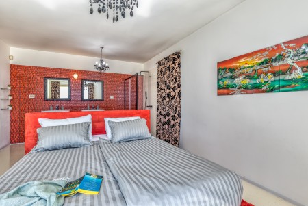 Further details: WiFi available free of charge. Private parking on the property. Infinity pool (12 x 4 m) with sun terrace, comfortable sun loungers and unique views. The pool can be heated in May, June and September, on request. Please indicate at the time of booking whether you want a heated pool or let the landlord know timely before arrival. The pool is not heated in July and August. For those who want to stay active on vacation – the small outdoor fitness area invites you to exercise in the open air.