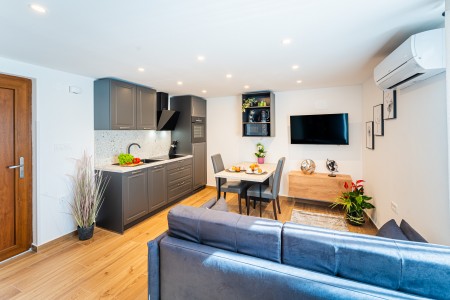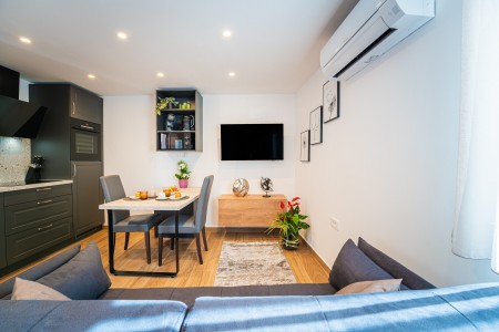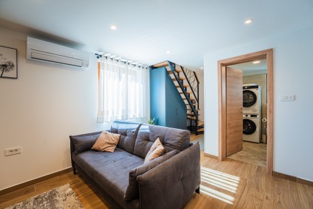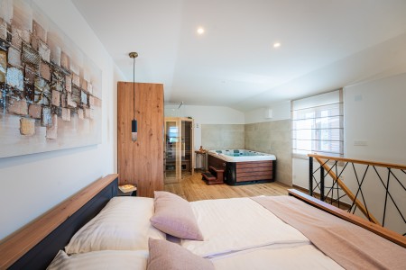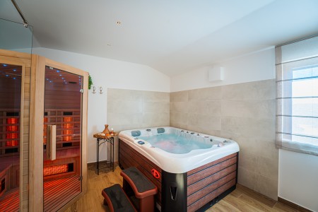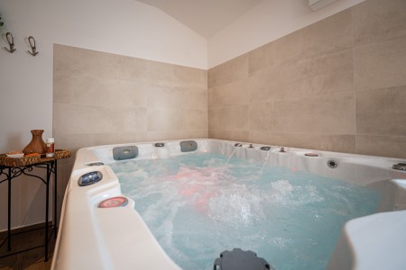 Discover the ultimate retreat in Sveti Donat, a small village nestled in the stunning landscape near the historic hilltop town of Buzet. This cosy holiday home for two people is spread over two floors and features a private sauna and jacuzzi – perfect for relaxation and well-being. Just 7 km away, Buzet offers shopping and dining options. For a cultural experience, visit the town of Motovun, 18 km away, known for its picturesque old town and additional shopping facilities, restaurants, and cafes. This house is the perfect starting point for exploring the beauty of Istria – from the tranquil countryside surrounding it to the lively coastal towns that are easily reached by car.