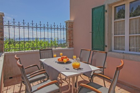 The cozy furnished holiday house Felix awaits you in a picturesque hillside location with breathtaking views of the sea and the offshore island of Cres. The detached house is located in Sveta Marina and is only 500 m away from the beach. Sveta Marina is a scenic little village on the east coast of Istria offering just perfect preconditions for a relaxing stay combined with various outdoor activities. In addition to secluded coves for swimming, sunbathing and snorkeling, you will find an amazing landscape that is just right for extended walking tours in the countryside. Restaurant and shopping facilities are within walking distance, while Labin, 8 km away, offers everything else for your daily needs as well as a historic town, which is certainly worth a visit. Both the house and the well-kept terraced garden with olives, fig trees and fragrant rosemary are completely at your disposal for your exclusive use.