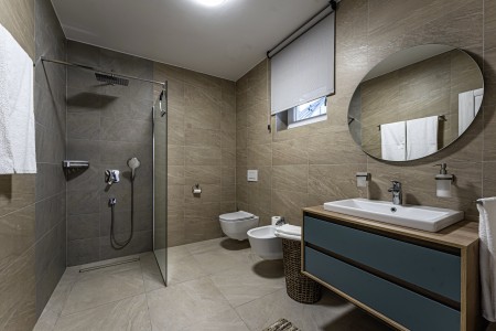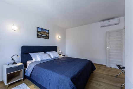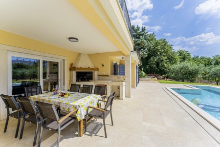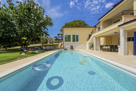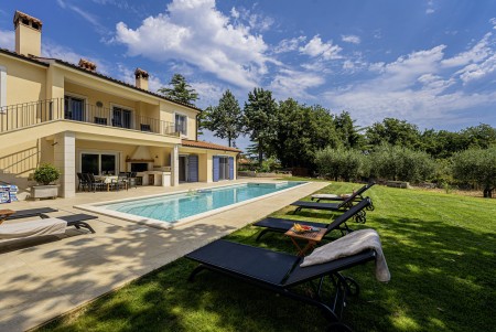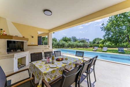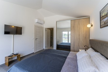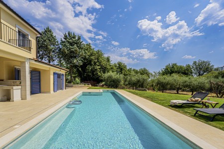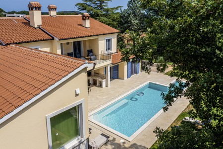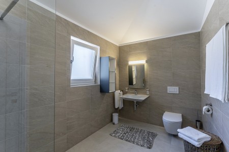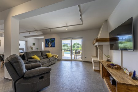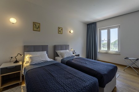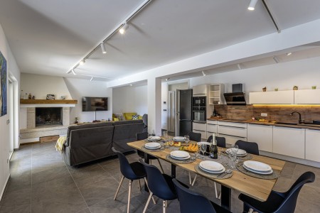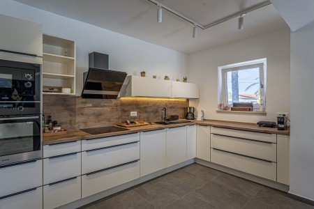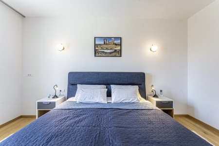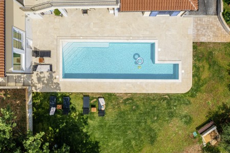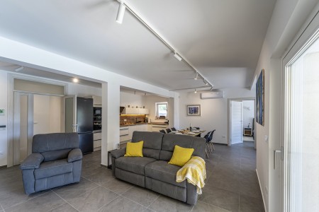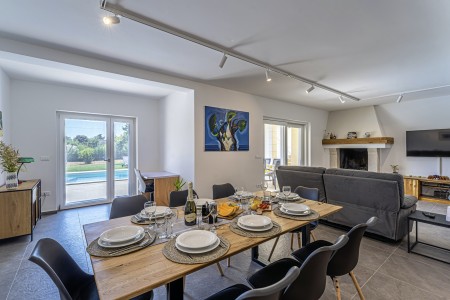 This newly built, modern villa is located on the outskirts of the small village of Ližnjan, only 800 m from the beach. In addition to a completely newly furnished interior with four comfortable bedrooms, a large garden with heated pool (12,5 x 4 m) awaits you. The entire property is for your exclusive use, so you can spend a relaxing vacation in peace and privacy, while amenities such as beach, restaurant and shopping facilities are within walking distance. Only 2 km away from Ližnjan is Medulin, a lively seaside resort that offers numerous entertainment options and a colorful range of water sports during the summer months. Moreover, in Medulin you will find the only sandy beach on the Istrian peninsula. To the next bigger city, Pula with its unique amphitheater and numerous other exciting sights it is only 12 km.