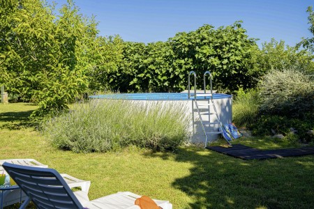 Comfortable holiday home with 3 bedrooms and a large, fully fenced garden (1500 m²) with private set-up pool, only 600 m from the beach
