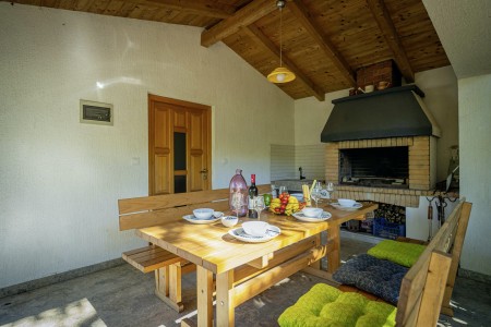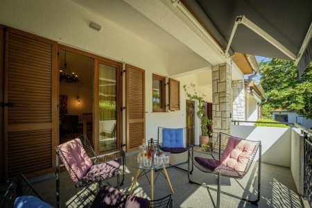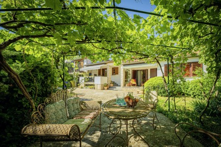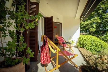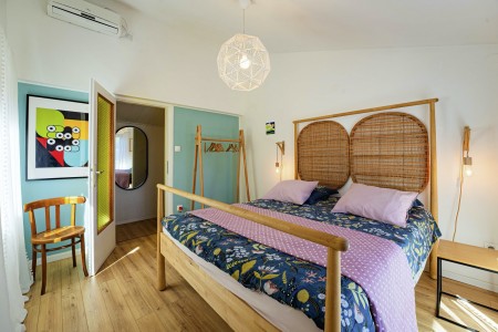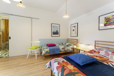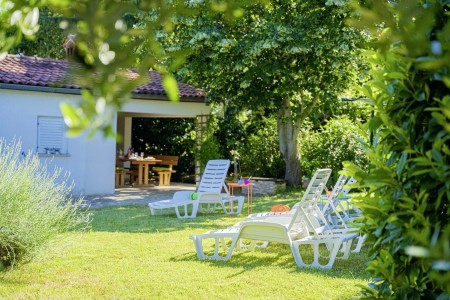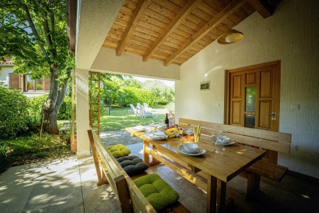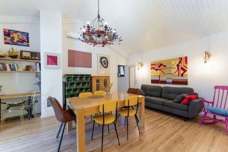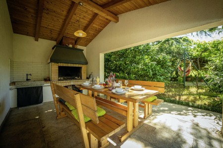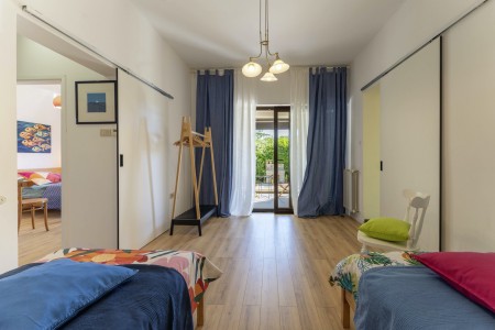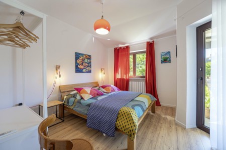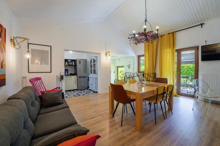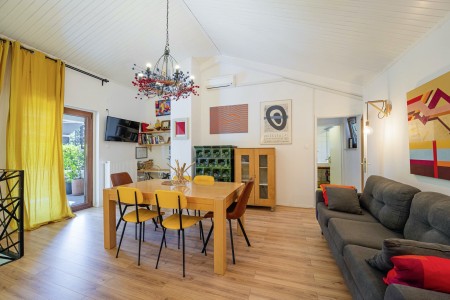 The comfortably furnished House Mare is located in Medulin, at the southern tip of Istria. Medulin is a lively coastal town that offers numerous entertainment options and a vibrant array of water sports during the summer months. Additionally, Medulin boasts the only sandy beach on the Istrian peninsula. With its friendly and colorful interior and three air-conditioned bedrooms, the house accommodates up to six people. Outside, you will find a large, well-maintained garden with a covered terrace, a summer kitchen with a barbecue fireplace, a private set-up pool (4,5 x 4,5 m, depth 1,20 m), and sun loungers – the perfect place to spend a warm summer evening and enjoy an alfresco dinner with family and friends. Equipped with all the amenities for a pleasant stay, this house is ideal for those who wish to spend their vacation in a peaceful environment while having easy access to the beach and lively coastal towns. The nearest beach is only 600 meters from the property, and the center of Medulin is 1.5 km away. The famous city of Pula, with its unique amphitheater and numerous other exciting attractions, is just 10 km away. The entire house, along with the garden and pool, is available for your exclusive use.