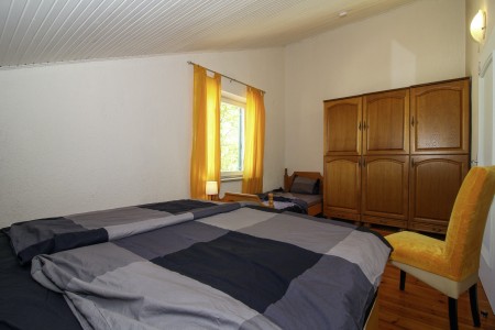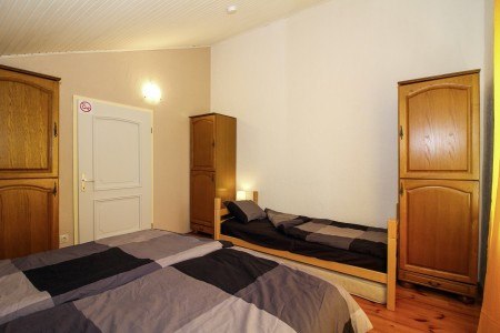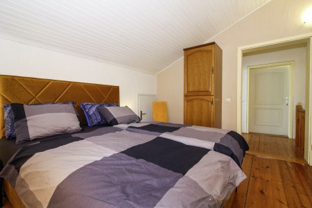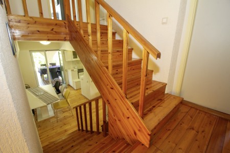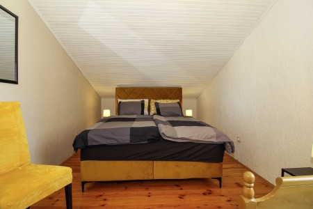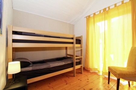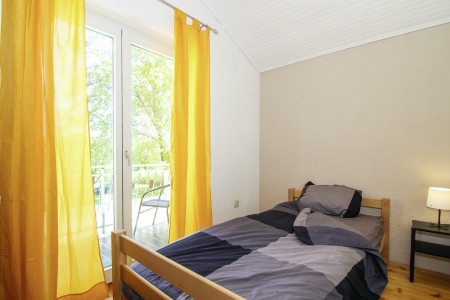 House for 7-9 persons: approx. 130 m² on three floors. On the ground floor, there is a fully equipped kitchen with air conditioning, a living/dining room with air conditioning and a WC. The first floor offers a bedroom with bunk bed and balcony, a bedroom with single bed and balcony, and a bathroom with bathtub. On the second floor, there are two bedrooms, each with a double bed and a single bed, and a shared bathroom with bathtub.