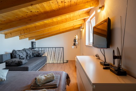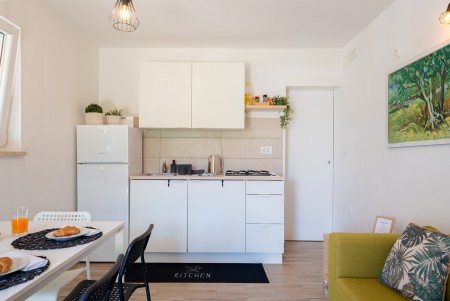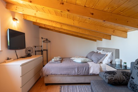 This simply furnished cottage is located in a quiet suburb of Pula, only 1,2 km from the nearest beach and about 4 km from the historic city center. Pula awaits its visitors with numerous sights, restaurants, places to go out and shopping facilities. The most famous monument and landmark of the city is the impressive Arena, an amphitheater dating back to Roman times, which can not only be visited, but also serves as a unique open-air stage for different concerts and movie events. Just a few minutes away by car is the fishing village of Fažana, from where excursion boats leave for the National Park of the Brijuni Islands, which are definitely worth a visit. Restaurant and shopping facilities are within walking distance.