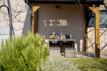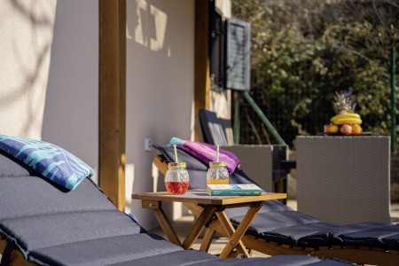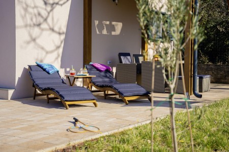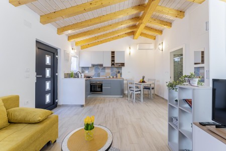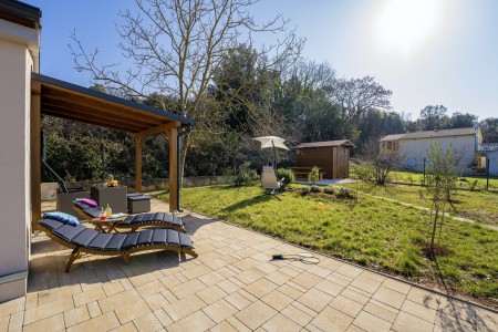 Modern furnished tiny house on large private plot (1100 m²), only 600 m to the beach and 4 km to Pula