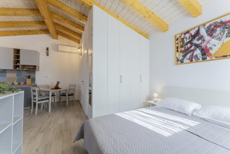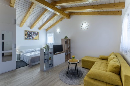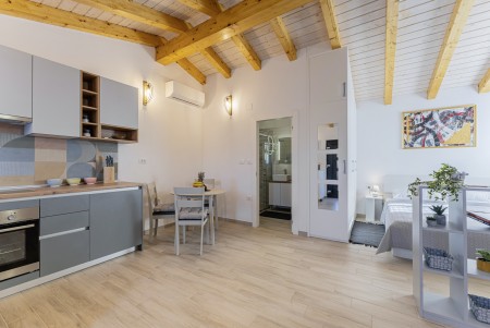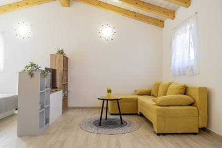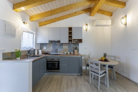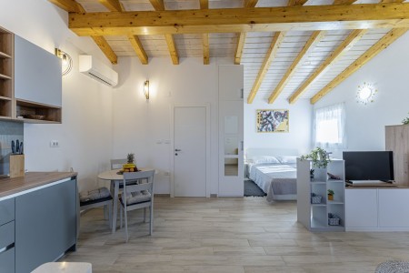 This new, modern furnished tiny house is located in Pješčana Uvala, a quiet hamlet in the outskirts of Pula, only 600 m from the nearest beach and about 4 km from the historic city center. Pula awaits its visitors with numerous sights, restaurants, places to go out and shopping facilities. The most famous monument and landmark of the city is the impressive Arena, an amphitheater dating back to Roman times, which can not only be visited, but also serves as a unique open-air stage for different concerts and movie events. Just a few minutes away by car is the fishing village of Fažana, from where excursion boats depart for the National Park of the Brijuni Islands, which are definitely worth a visit. Restaurant and shops are within walking distance.