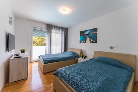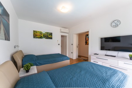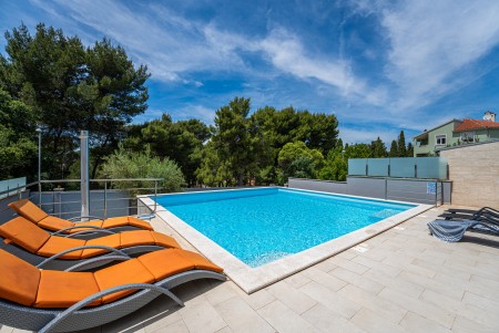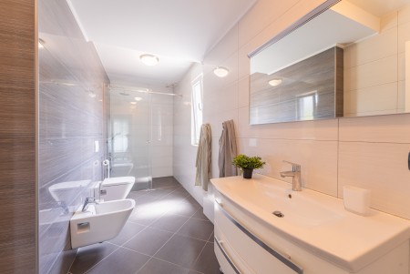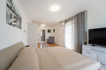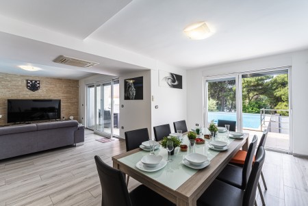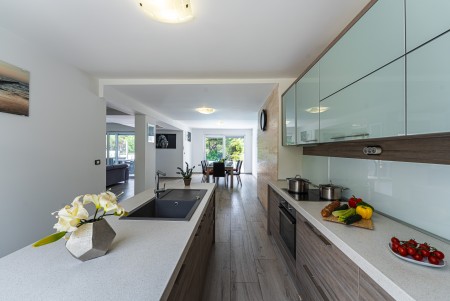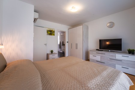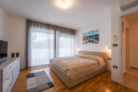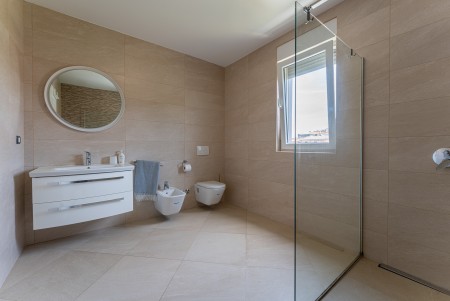 This modern villa with four bedrooms is located in Stoja, one of the districts of Pula, just 200 m from the nearest beach and approx. 3,6 km from the historical city center. Pula awaits its visitors with numerous sights, restaurants, nightlife and shopping facilities. The most famous monument and landmark of the city is the impressive Arena, an amphitheater dating back to Roman times, which cannot only be visited, but also serves as a unique open-air stage for different concerts and movie events. Only 15 minutes by car from Pula is the fishing village of Fažana, from where excursion boats depart for the National Park of the Brijuni Islands, which are definitely worth a visit. In addition to numerous possibilities for exciting excursions and entertainment, you will find a comfortable villa with four bedrooms and an outdoor area with private pool (10 x 7m), sun terrace, comfortable sun loungers and a barbecue. The entire property is for your exclusive use. Restaurant and shops are within walking distance.