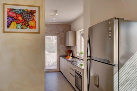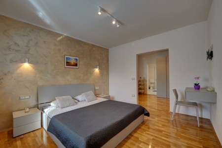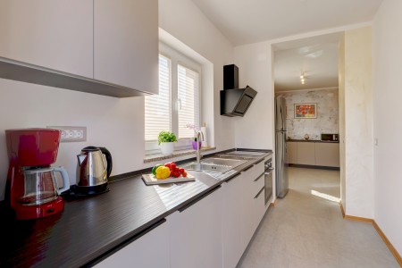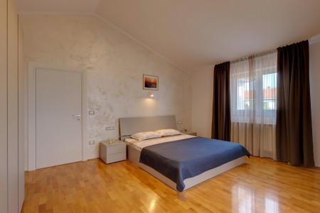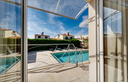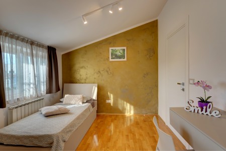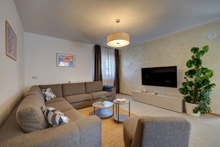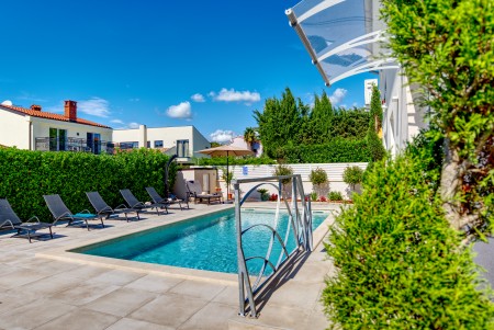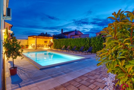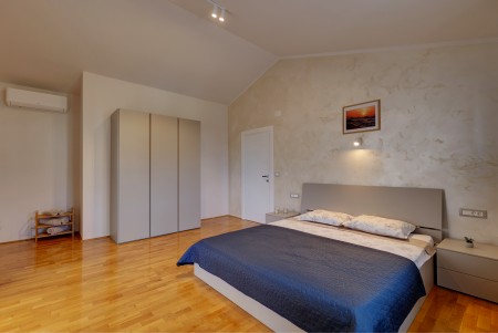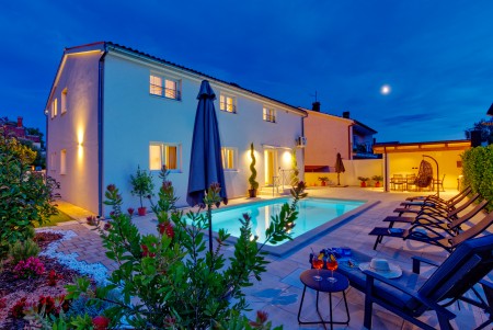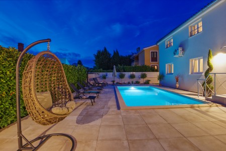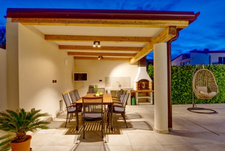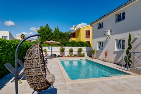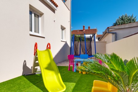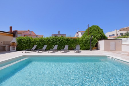 This modern, detached villa with four bedrooms is located in Štinjan, a peaceful suburb of Pula, just 850 metres from the nearest beach and 3 km from the historic city center. Pula awaits its visitors with numerous attractions, restaurants, nightlife, and shopping opportunities. The city's most famous landmark is the impressive Roman amphitheater, known as the Arena, which not only can be visited but also serves as a unique open-air venue for concerts and movie events. A short drive from Pula is the fishing village of Fažana, from where excursion boats depart to the Brijuni Islands National Park, definitely worth a visit. In addition to numerous excursion and entertainment options, you will find a comfortable villa with four bedrooms and a well-maintained outdoor area featuring a private pool (4 x 7 m), sun terrace, comfortable loungers, and a barbecue area. The youngest guests can look forward to their own playground with a trampoline, swing, slide, and climbing frame. The entire property is available for your exclusive use. Restaurants and shopping facilities are within walking distance.
