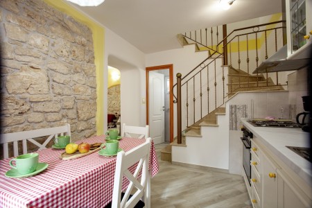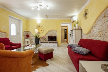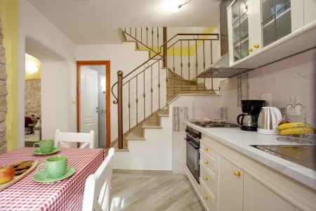 Situated in Rovinjsko Selo, a tranquil suburb of Rovinj, the Pokrajac holiday home is fully renovated, thoughtfully decorated, and can accommodate up to five guests. In addition to a well-maintained interior, guests can enjoy a private outdoor area complete with a terrace, dining table, and grill. The numerous beaches in Rovinj and the enchanting old town are just a few minutes away by car. If you wish to experience the vibrant tourist atmosphere in Rovinj while staying in a peaceful location, Pokrajac house is the perfect choice. Restaurants and shopping facilities are within walking distance.