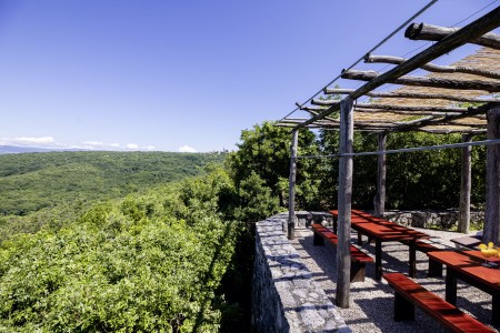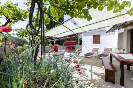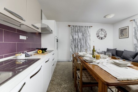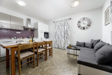 The Gržetić family have always been engaged in organic farming. On several thousand square meters of land they do not only keep chickens, but also produce their own olive oil. In this beautiful rural surrounding two holiday homes and one apartment are available for rent. The large house consists of two parts, each with its private entrance at the front and back of the building. The houses and the apartment can be rented separately or together.
