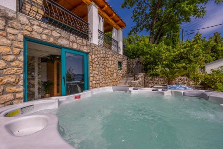 Jadranovo is a charming village on the mainland, situated opposite the renowned island of Krk and approximately 11 km from the town of Crikvenica. This detached house features three bedrooms, accommodates up to six guests, and is tastefully yet cozy furnished. Perfect for a family getaway, a romantic retreat for two, or even a vacation with your dog, the house is just 100 meters from the beach and offer stunning sea views. Outdoors, guests can enjoy a sea-view terrace complete with a whirlpool, while the ground floor boasts an infrared sauna for ultimate relaxation. For those who wish to stay active during their vacation, the Crikvenica Riviera region offers numerous cycling and hiking trails. The nearest grocery store is about 200 meters away, and a restaurant is about 1 km from the property.