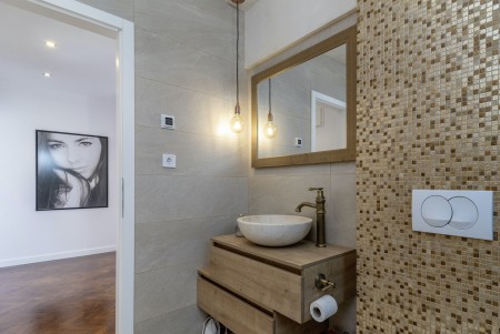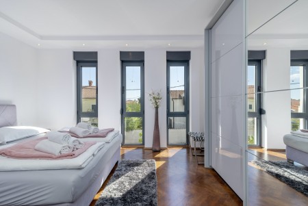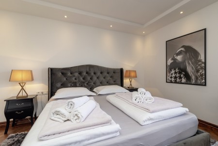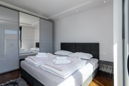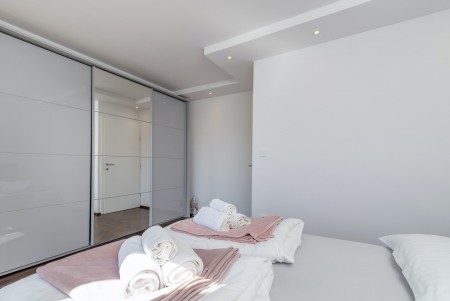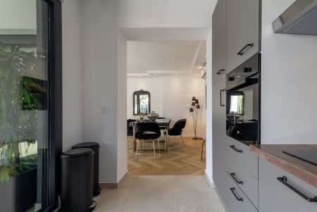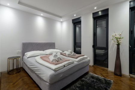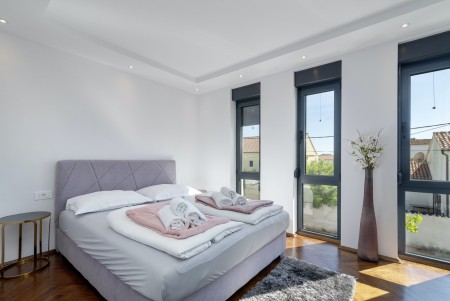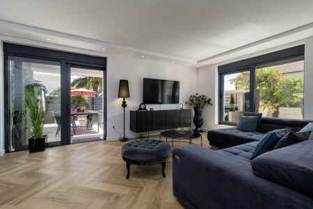 The Villa with four comfortable bedrooms and fully fenced garden with private pool (8 x 4 m) is located in a well-kept residential area of Vodice, only 1 km from the center and 200 m from the beach. Restaurant and shopping facilities are within walking distance. In addition to a high-quality furnished interior with all amenities for a comfortable stay, a well-kept outdoor area framed by a stone wall awaits you, which, like the house, is for your exclusive use. The picturesque fishing village of Vodice is located 10 km north of Šibenik and about 60 km south of Zadar in a wide curved bay with a shallowly sloping pebble beach. Vodice's popularity is due to its beautiful rocky and pebbly beaches and the countless small bays in the surrounding area, as well as the narrow streets of the old town and the promenade along the shore, where people meet late in the afternoon or in the evening to stroll around or to stop at one of the many restaurants or cafes. Due to the proximity of the island paradise of Kornati National Park and other islands, Vodice is an ideal starting point for divers to the magical underwater world of the Adriatic. The national parks Krka waterfalls, Paklenica, Plitvice lakes and Kornati are ideal for excursions. The cities of Zadar, Šibenik, Trogir and Split are also worth seeing.