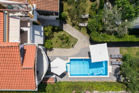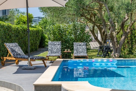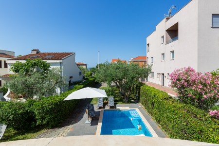 This comfortable holiday home with a lovely garden and private swimming pool (8 x 4 m) is located in Bibinje, just 7 km south of Zadar. It offers accommodation for up to 8 people and is divided into three separate units, which is very convenient for several people holidaying together. During the day you can meet in the garden with a barbecue, a fully equipped covered summer kitchen and an outdoor dining area, while in the evening you can spend your time in privacy. Restaurant, grocery store and beach are only a short walk away. For mountain enthusiasts, a visit to Paklenica National Park is highly recommended. Zadar, the former capital of Dalmatia, is situated on a peninsula and is only 7 km away from the villa. Among its most iconic attractions are the world-famous Sea Organ ("morske orgulje") and the Greeting to the Sun ("pozdrav suncu"). Moreover, Zadar offers a wide range of dining and entertainment options.