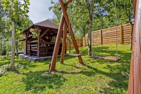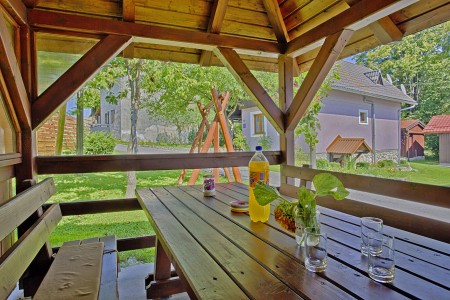 The house with two bedrooms and a well-kept outdoor area with a pavilion and barbecue facilities is located in Sertić Poljana, only 13 km from the entrance to the Plitvice Lakes National Park. Restaurants and shopping facilities can be reached by car in a few minutes. Surrounded by amazing countryside, the house is located close to the beautiful canyon, which separates the village from the woods of the National Park.