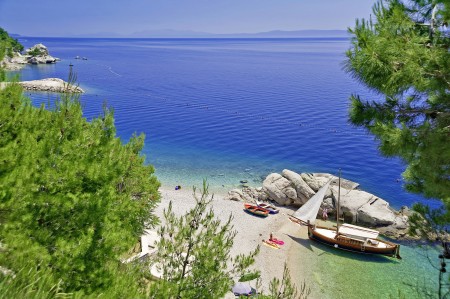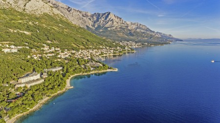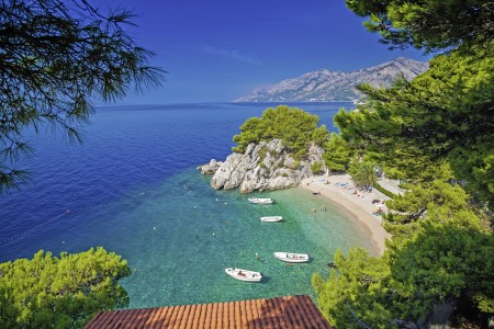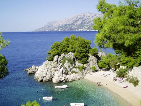 Brela, a small town on the Makarksa Riviera, is situated 15 km north of Makarska. The town consists of an older part (Gornja Brela) near the main road, and the newer part (Donja Brela) which lies on the coast. The ancient Berulia (Gornja Brela), which history says dates from the year 950 b.c., was for a long time a settlement for pirates. On the other side the modern part of the town (Donja Brela) developed itself into a modern tourist resort in the second part of the 20th century. This picturesque town is today the “door” to the Makarska Riviera. Brela is also located at the foot of the mountain Biokovo and is on the coast facing the island of Brac. Brela, thanks to its wonderful pebble beaches, its always green pine forests, the crystal clear sea and the comfortable hotels and private houses, is really a resort of unique beauty. In Brela there are opportunities for a variety of different sports such as tennis, bocce (boules), mini golf and various water sports, in the restaurants you can taste national and international specialities, and during the season there are often cultural and entertainment evenings, all aimed at ensuring you a first class holiday in Brela.