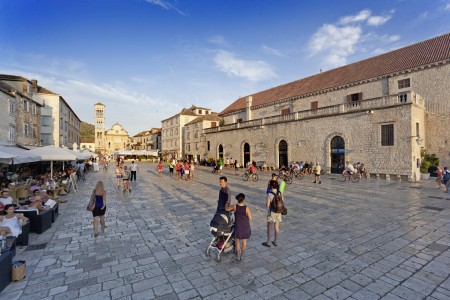 The town of Hvar is easy accessible from various sides, but probably the most attractive way to enter it is from the sea side. Admiring the old town, you will notice the romantic “Riva” surrounded by beautiful palms, the ancient city walls which end with the tower from the 7th century, on the hill above the town. On almost every corner you will find historical monuments which witness the long and rich history of Hvar. The layout of the town has been changed many times over the centuries, but today’s form is from the Renaissance period. Many visitors to Hvar acclaim that it is “the small box of treasures” of the Adriatic. It is important to notice that Hvar has the oldest theatre in Dalmatia. The favourable climate is very good for the healing of pulmonary diseases. Hvar invites its guests to spend their holidays in the numerous comfortable hotels, to enjoy the sun and the warm Adriatic Sea on its quiet beaches and to experience the night life, which is probably one of the best in this region of Croatia.