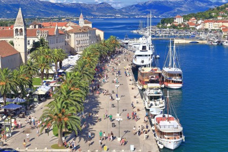 One of the most picturesque old towns of Dalmatia. Trogir – about 20 km north of Split, close to the airport. The old town is situated on a small island, which is connected by a bridge to the main land. Another bridge leads from this island to the island of Čiovo, upstream of Trogir. Due to its numerous monuments from all periods, Trogir is also called “Museum City”. It is a great experience to stroll through the narrow alleys during the afternoon or evening time. The massive walls, defence towers, churches, frescoes and vaults are simply astonishing. It is also interesting to take a look into the old back yards. After visiting the museums, treasuries, art collections and old libraries, restaurants, cafés, taverns and the typical Konobas invite you to enjoy a relaxing break. Seget, which is situated right next to Trogir, actually consists of two villages, Seget Donji with its superb stone and gravel beaches, and Seget Gornji, set a few miles away on a mountain, with its ancient stone houses. In short: Trogir and Seget are the ideal combination for a relaxing and exciting vacation.