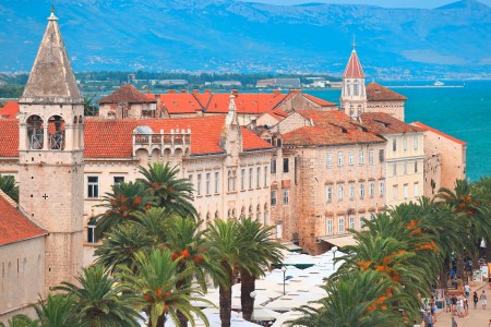 One of the most picturesque old towns of Dalmatia: Trogir – about 20 km north of Split, close to the airport. The old town is situated on a small island, which is connected by a bridge to the main land. Another bridge leads from this island to the island of Čiovo, upstream of Trogir. Due to its numerous monuments from all periods, Trogir is also called “Museum City”. It is a great experience to stroll through the narrow alleys during the afternoon or evening time. The massive walls, defence towers, churches, frescoes and vaults are simply astonishing. It is also interesting to take a look into the old back yards. After visiting the museums, treasuries, art collections and old libraries, restaurants, cafés, taverns and the typical Konobas invite you to enjoy a relaxing break. Seget, which is situated right next to Trogir, actually consists of two villages, Seget Donji with its superb stone and gravel beaches, and Seget Gornji, set a few miles away on a mountain, with ist ancient stone houses. In short: Trogir and Seget are the ideal combination for a relaxing and exciting vacation.