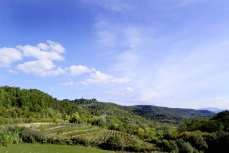 The Buje area, located in the northern part of the Istrian peninsula, stretches from the Mirna river to the Dragonja river, which also forms the border with the Republic of Slovenia. The extensive hilly landscape features vineyards, olive groves, fields, meadows rich with herbs and green forests, which altogether make the typical Mediterranean scent. The surroundings of Buje - the so-called "Bujština" is nowadays the most popular wine-growing region in Istria. In numerous wineries and typical restaurants, not only high-quality wines but also regional specialties can be tasted.