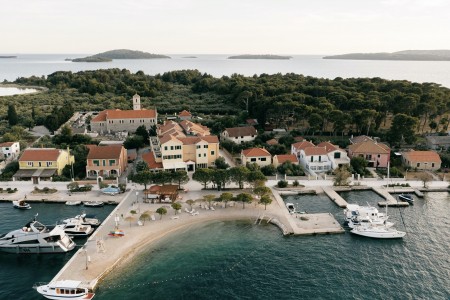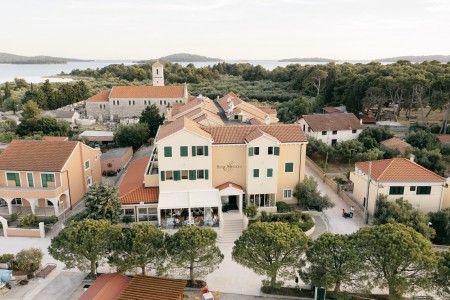 Facilities: Restaurant, beach bar, room service (for a fee), heated indoor pool, fitness studio. There is a marina for up to 25 boats at the hotel. Free parking in Brodarica on the mainland, free boat transfer from the mainland to the hotel and vice versa from 08:00 to 22:00. This means that you can also get to the mainland during your stay, for example to go on excursions.