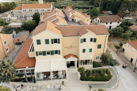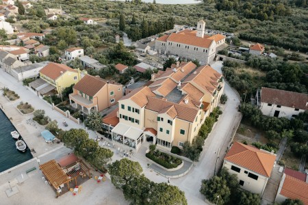 The newly built Hotel Spongiola is located on the coast of the small, picturesque island of Krapanj, only about 300 meters from the mainland, and is surrounded by a beautiful pine forest. It was built on the site of an old sponge diving cooperative and houses a modern diving center. In the small town center of Krapanj, taverns, bars and stores invite you to linger during the season. The island has been known for centuries for its sponge divers, who "harvest" natural sponges from the seabed.