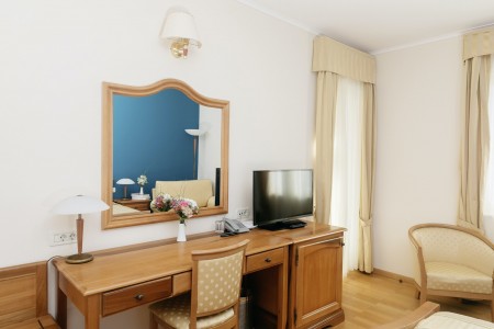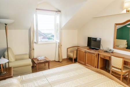 Triple room: approx. 27 m², large double bed (180 x 200 cm), additional bed (120 x 200 cm), can also be booked with balcony with island view.