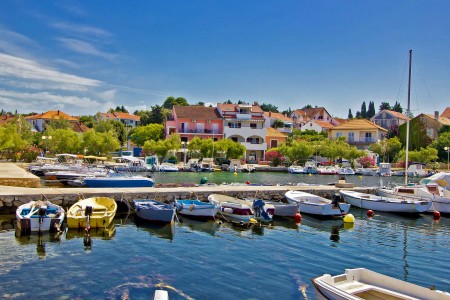 The picturesque fishing village of Petrcane, where restaurants, taverns and Konobas specialise in fresh fish and local dishes, is located about 10 km north of Zadar, the cultural and historical centre of Northern Dalmatia. Houses in this town are partially built in the Mediterranean style, surrounded by Pine trees and beaches. The city beach is situated on an encircled wooded peninsula full of rocks and other gravel beaches. This is for sure the ideal place for a family vacation.